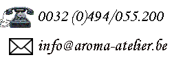 De fysieke winkel te Broechem bezoeken Dit is mogelijk op maandag - dinsdag, donderdag of vrijdag na afspraak. Je bent dus van harte welkom na een seintje. Dit komt omdat ik ook consulten & Aura-Soma consulten doe en tijdens een consult geen klanten kan verder helpen. Lukt het niet in de week? Geen probleem, een afspraak op zaterdag tussen 15u & 17u is ook mogelijk. Wil je graag je edelstenen of andere spullen zelf uitkiezen of heb je graag wat uitleg bij je aankopen, ben je altijd van harte welkom in de winkel! Ook bestellingen kunnen afgehaald worden als je graag de verzendingskosten wil uitsparen of wenst kennis te maken. Er is een optie bij verzendmethode voorzien waar je kan kiezen voor : "Afhalen te Broechem" Liever wat tijd om vragen te stellen of voor een meer persoonlijke kennismaking? Neem dan even contact op en dan kiezen we samen een moment. U kan een afspraak maken via e-mail (info@aroma-atelier.be) of via het GSM-nummer 0494/055.200 Ik ben telefonisch bereikbaar op maandag, dinsdag, donderdag & vrijdag tussen ca 10u & 17u Via e-mail ben ik altijd bereikbaar en u krijgt steeds een antwoord binnen 24h. Valérie's Aroma-atelier Oelegemsesteenweg 25 2520 Broechem (Ranst) Telefoon: 0032(0)494/055.200 Ik ben telefonisch bereikbaar op maandag, dinsdag, donderdag & vrijdag tussen ca 10u & 17u Zowel