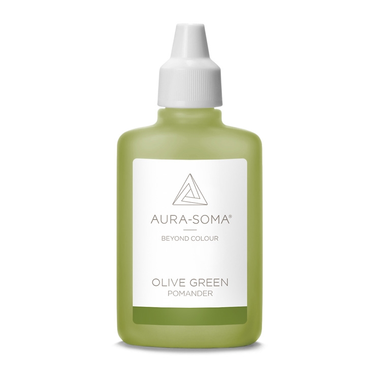 De olijf groene pomander zuivert de energie en brengt frisheid in onze ruimte. Hij helpt bij het loslaten van angsten en ontgoocheling, die ook samenhangen met onze gevoelens. Aangeraden voor personen die op het punt staan beslissingen te nemen en voor een dilemma staan.