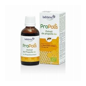 Propolis komt voort uit een harsachtige substantie door bijen verzameld uit de knoppen van bepaalde bomen (berken, populieren,...). De bijen mengen deze substantie met hun eigen speeksel, was en stuifmeel om zo Propolis te bekomen. Het propolisextract van ladrôme is verkregen door koude persing van propolis in biologische alcohol en water. Door deze methode wordt een extract van hoge kwaliteit verkregen, conform aan het Farmacopee en rijk aan actieve bestanddelen.