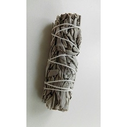 Witte Californische Salie smudge stick van gebundelde takjes en blaadjes om te smudgen.